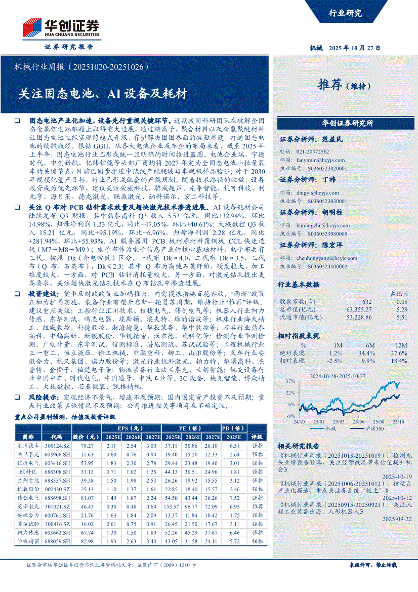 机械行业:华创证券-机械行业周报:关注固态电池、AI设备及耗材-251027