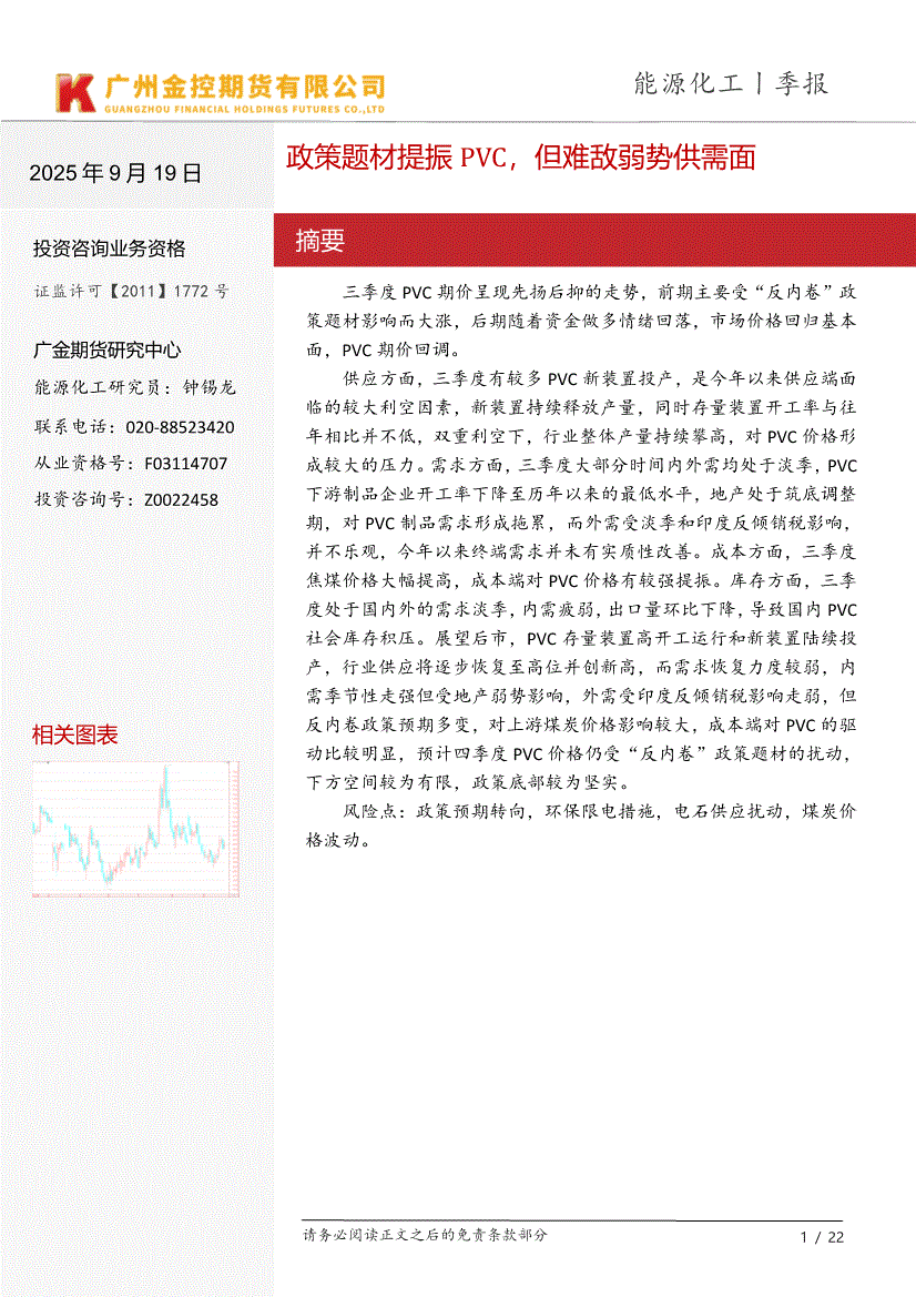 广金期货-能源化工季报:政策题材提振PVC,但难敌弱势供需面-250919