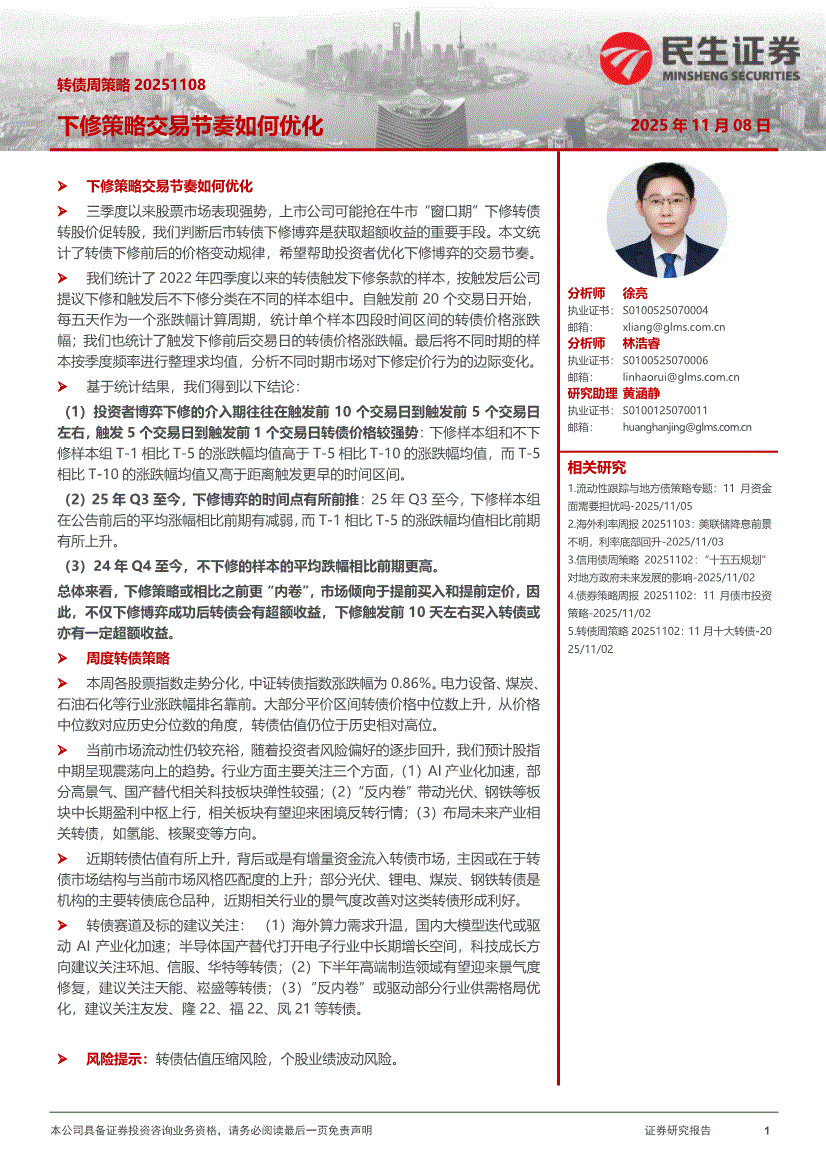民生证券-转债周策略:下修策略交易节奏如何优化-251108