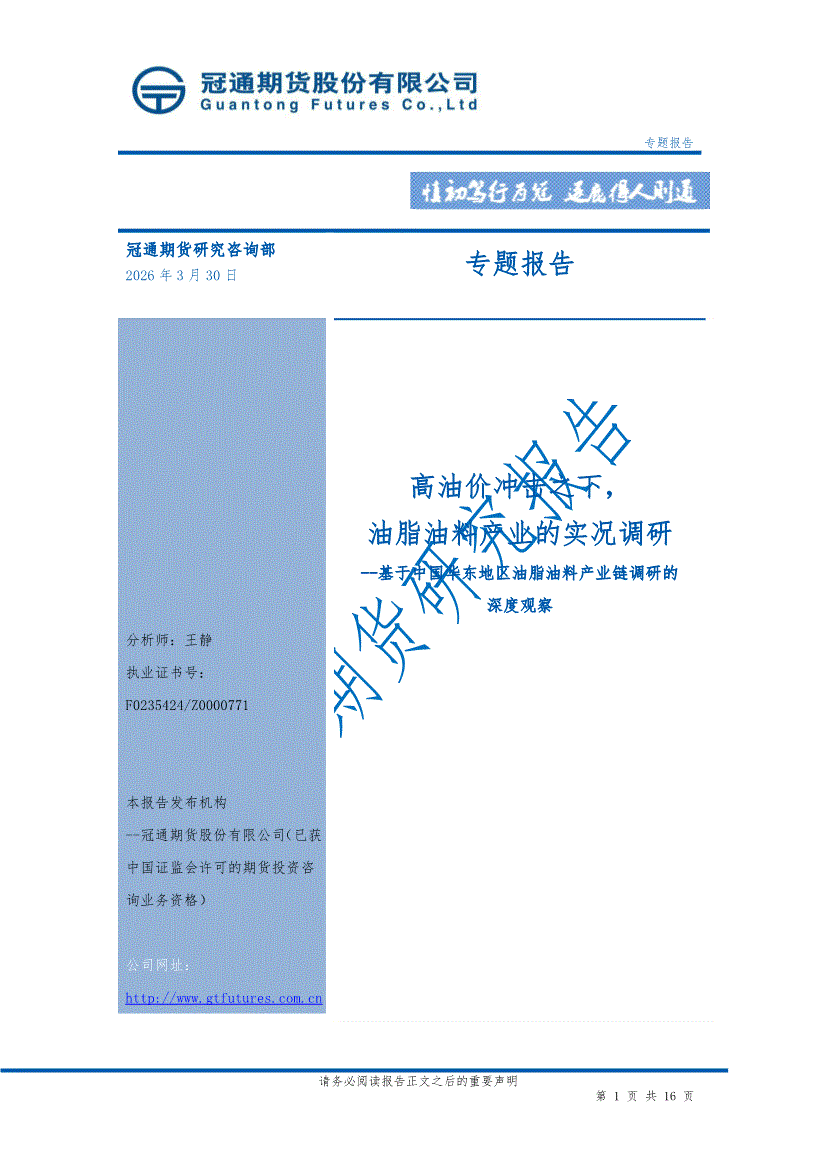 冠通期货-专题报告:高油价冲击之下,油脂油料产业的实况调研-260330