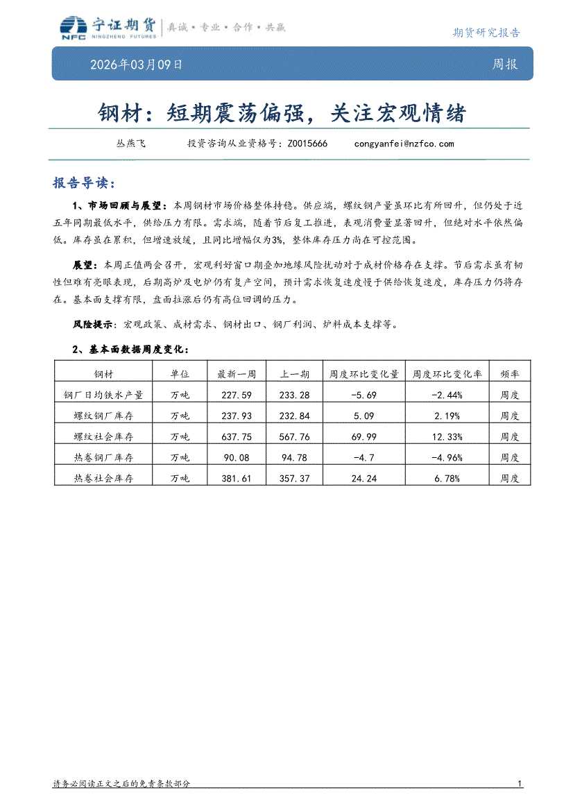 宁证期货-钢材周报:短期震荡偏强,关注需求恢复-260302