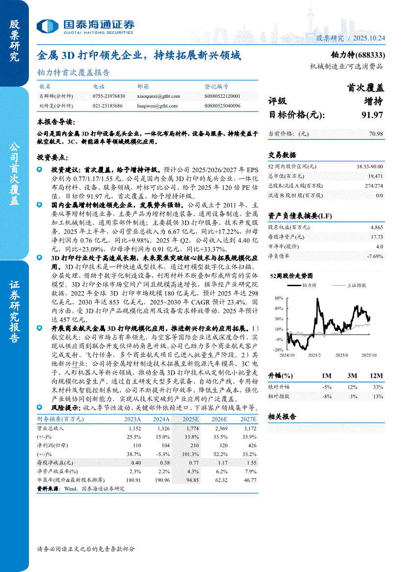 铂力特:国泰海通证券-铂力特-688333-首次覆盖报告:金属3D打印领先企业,持续拓展新兴领域-251024