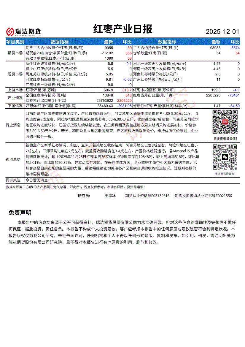 瑞达期货-红枣产业日报-251201