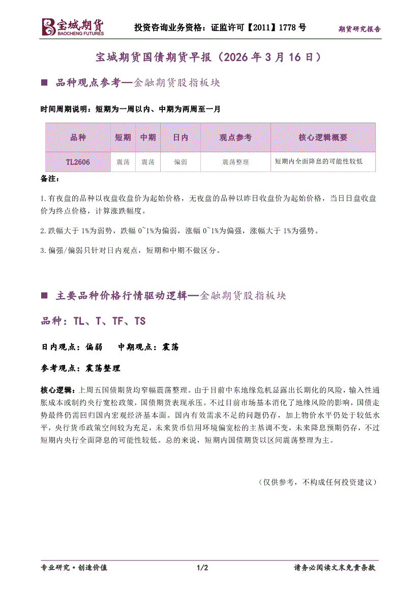 宝城期货-国债期货早报-260316