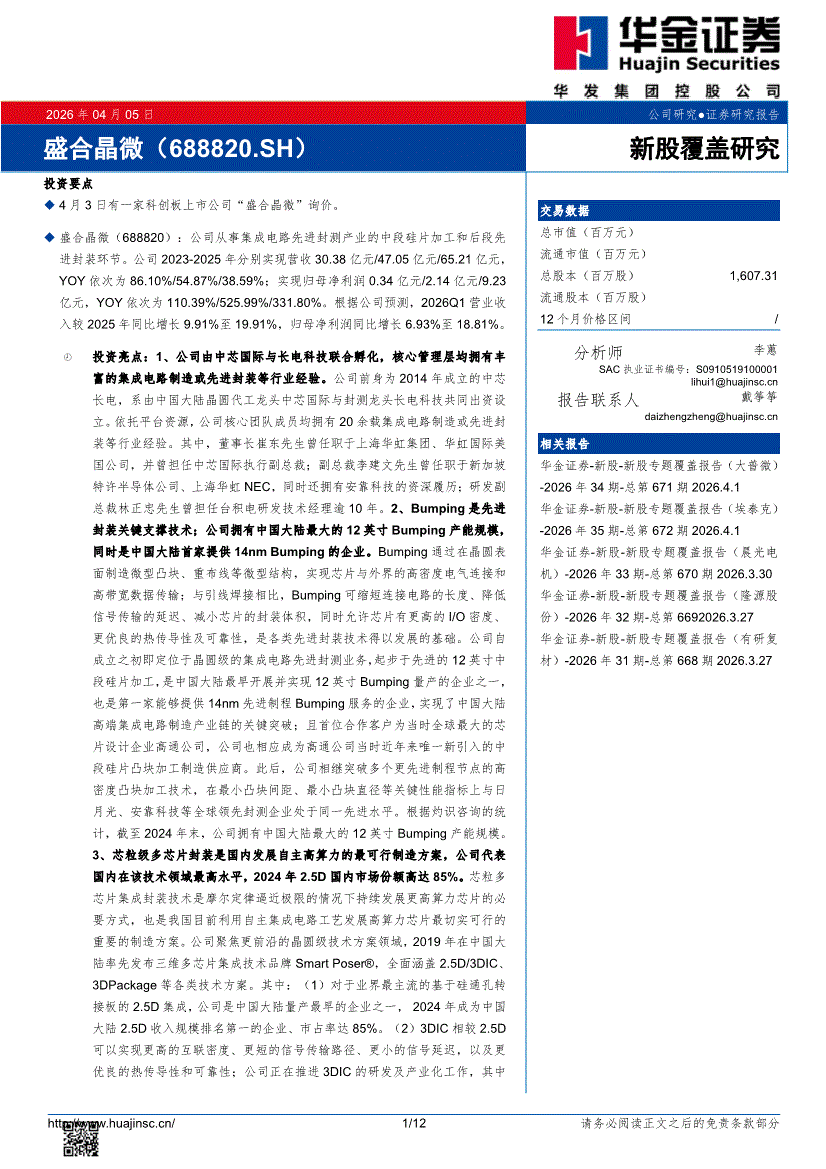 盛合晶微:华金证券-盛合晶微-688820-新股覆盖研究-260405