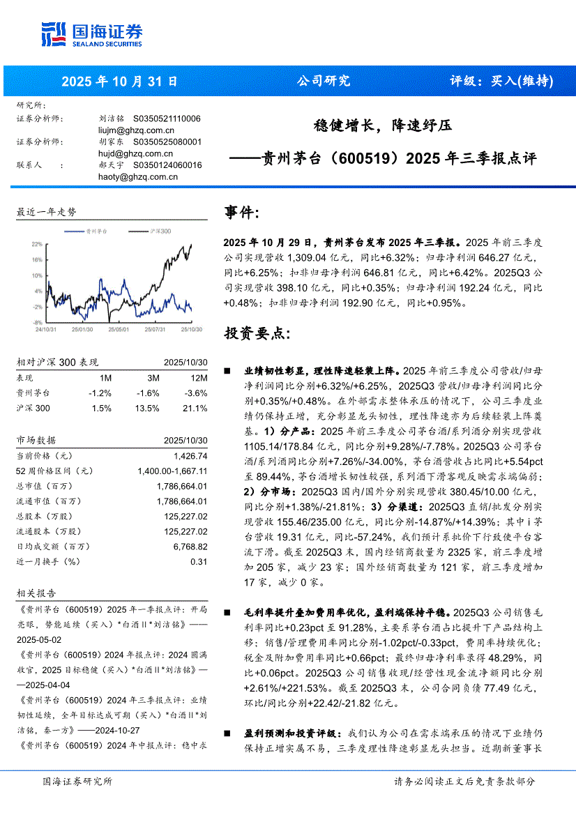 贵州茅台:国海证券-贵州茅台-600519-2025年三季报点评:稳健增长,降速纾压-251031