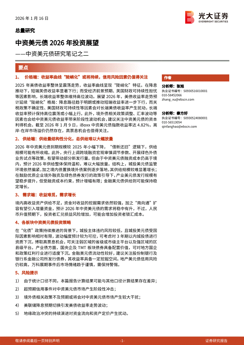 光大证券-中资美元债研究笔记之二:中资美元债2026年投资展望-260116