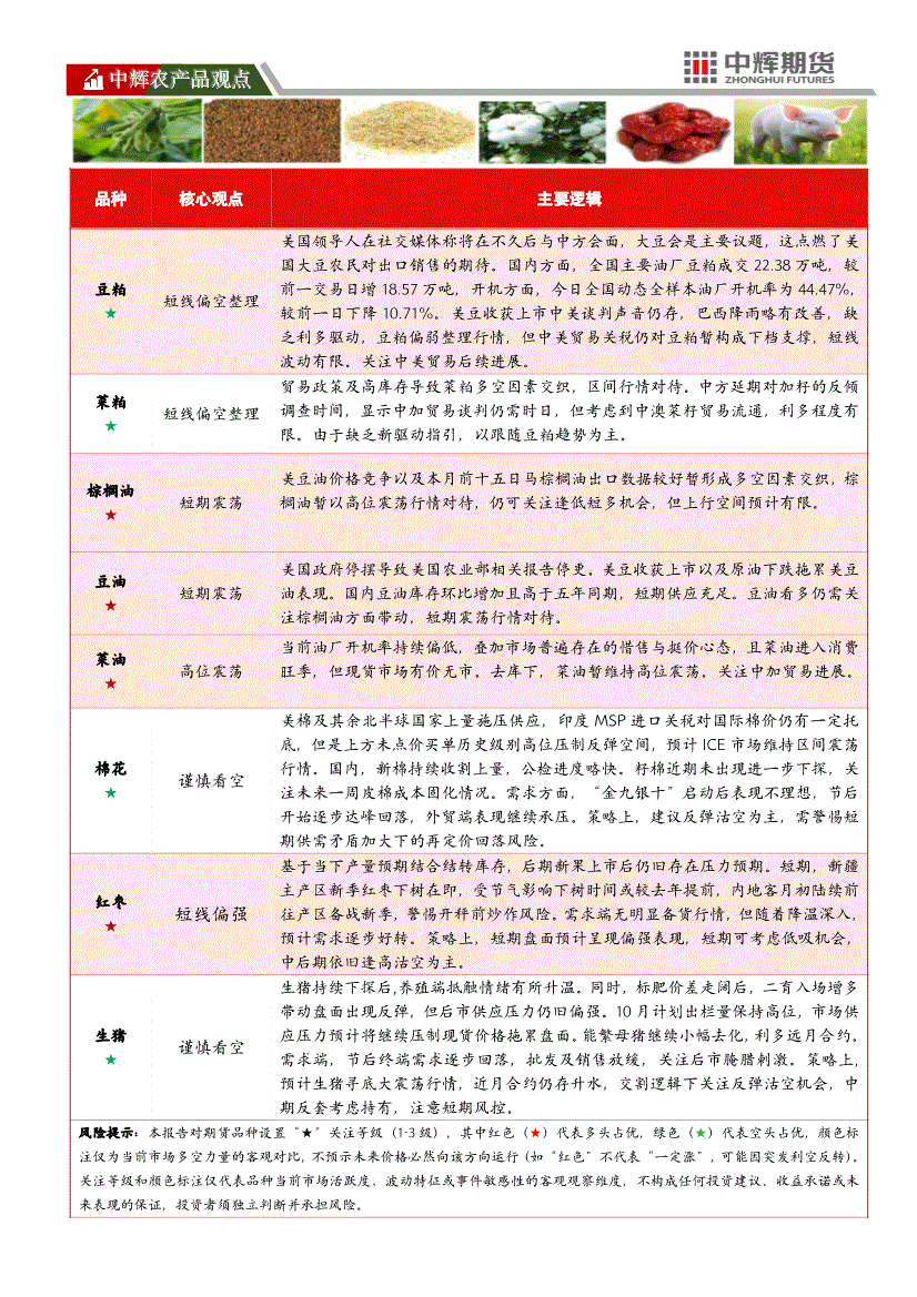 中辉期货-农产品观点-251015