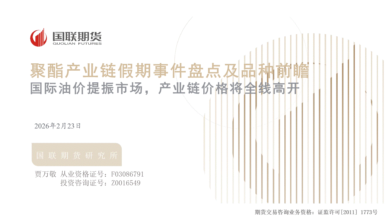 国联期货-聚酯产业链假期事件盘点及品种前瞻:国际油价提振市场,产业链价格将全线高开-260223
