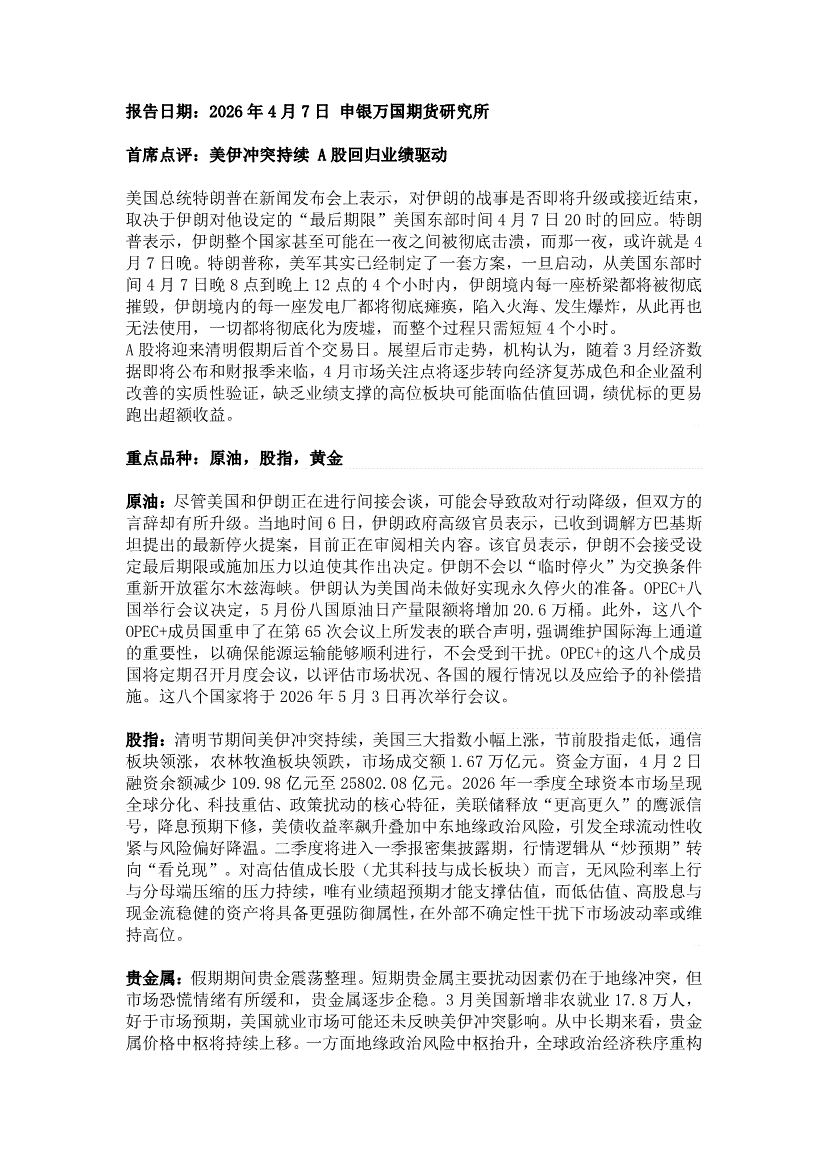 德邦证券-策略点评:化工板块表现亮眼-260407