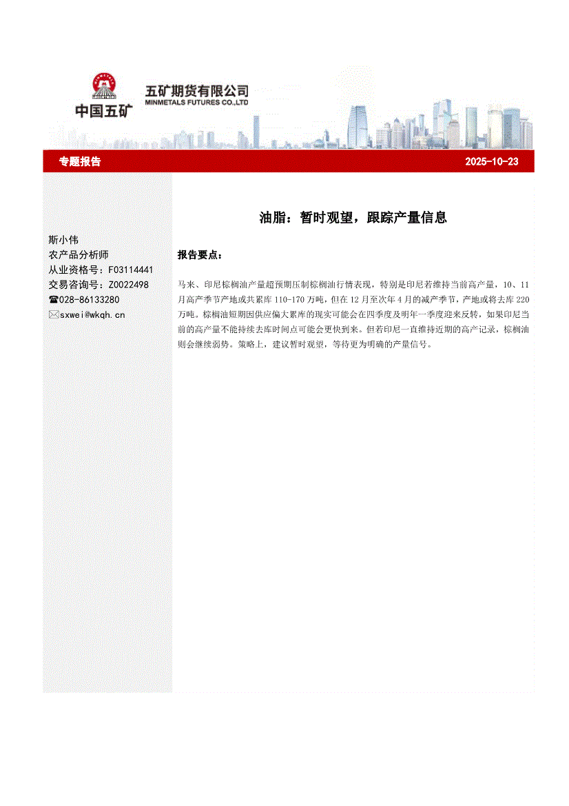 五矿期货-油脂专题报告:暂时观望,跟踪产量信息-251023