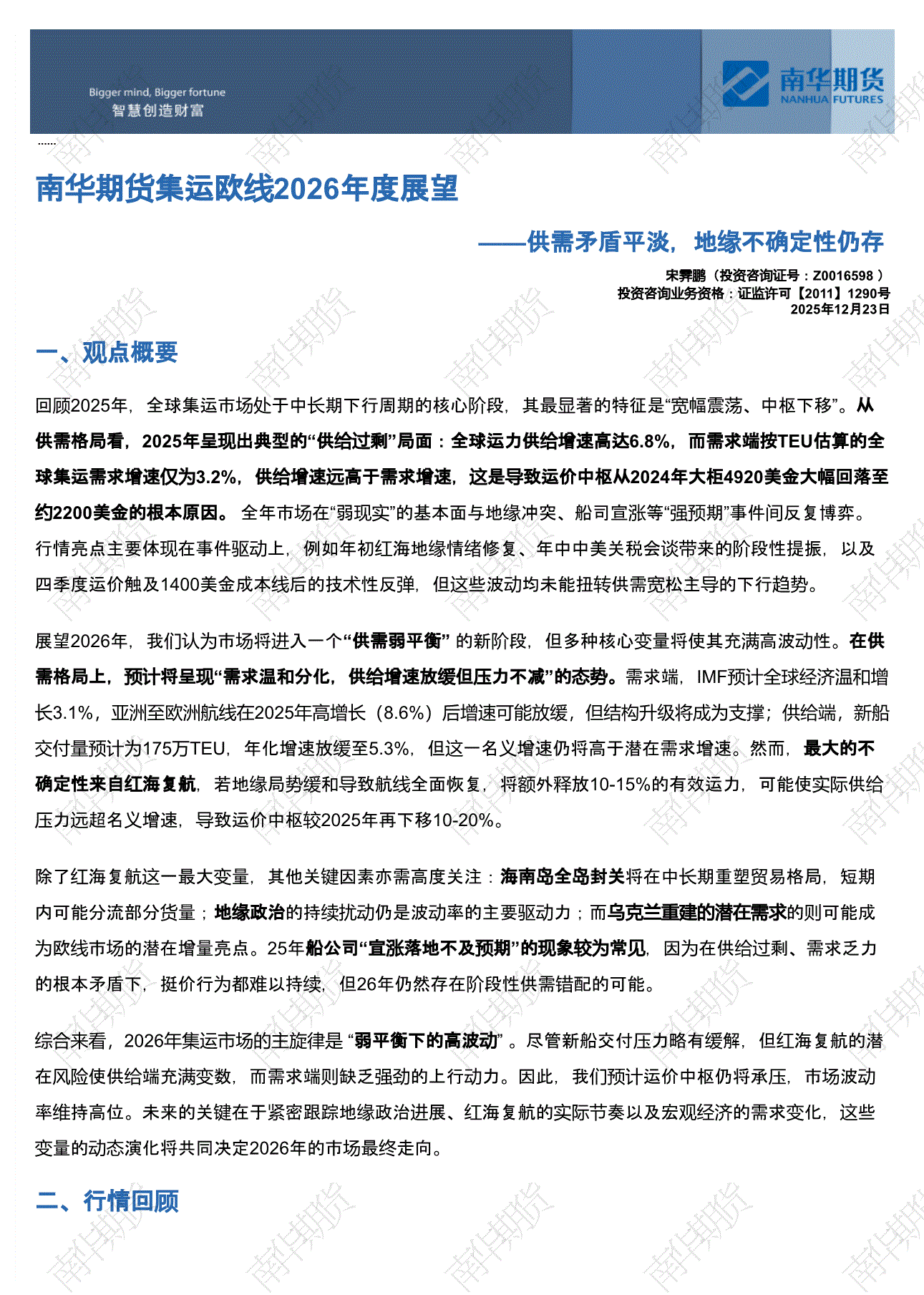 南华期货-集运欧线2026年度展望:供需矛盾平淡,地缘不确定性仍存-251223