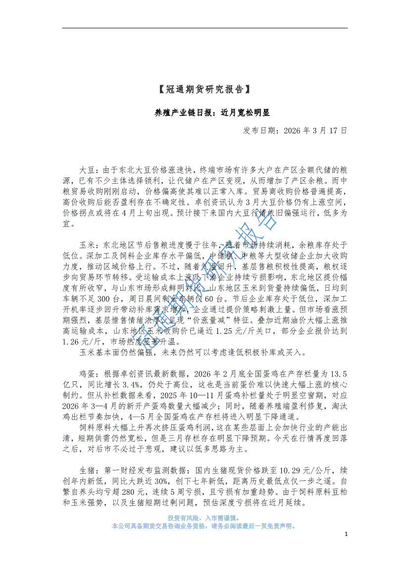 冠通期货-养殖产业链日报:近月宽松明显-260317