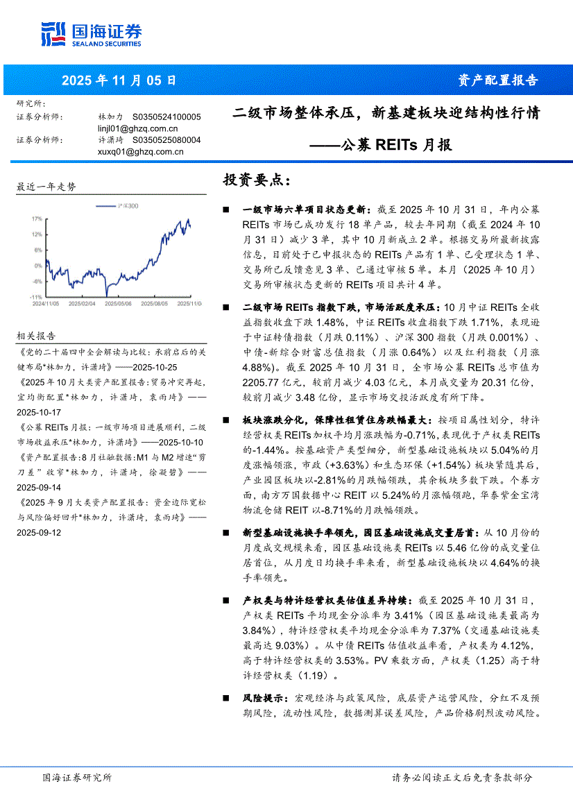 国海证券-公募REITs月报:二级市场整体承压,新基建板块迎结构性行情-251105