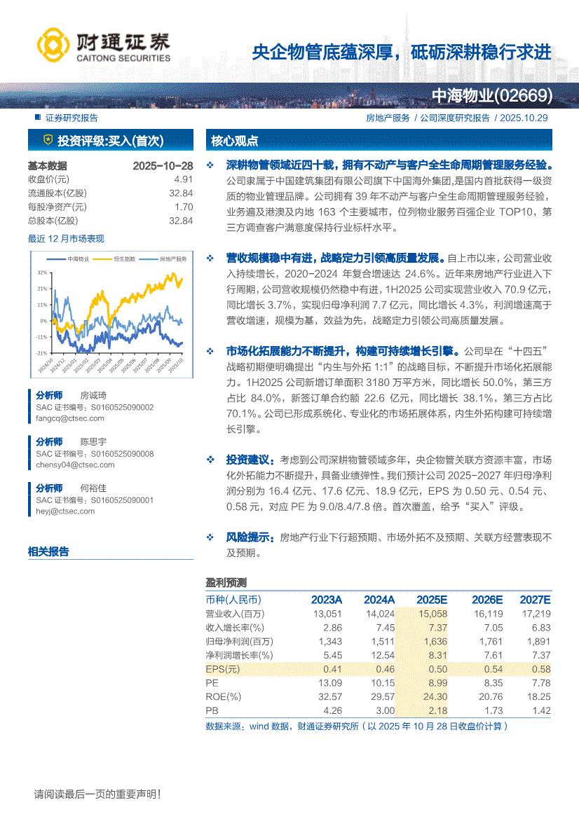 中海物业:财通证券-中海物业-2669.HK-央企物管底蕴深厚,砥砺深耕稳行求进-251029