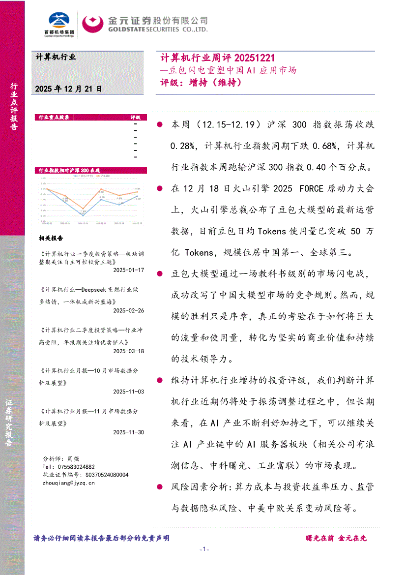 计算机行业:金元证券-计算机行业周评:豆包闪电重塑中国AI应用市场-251221