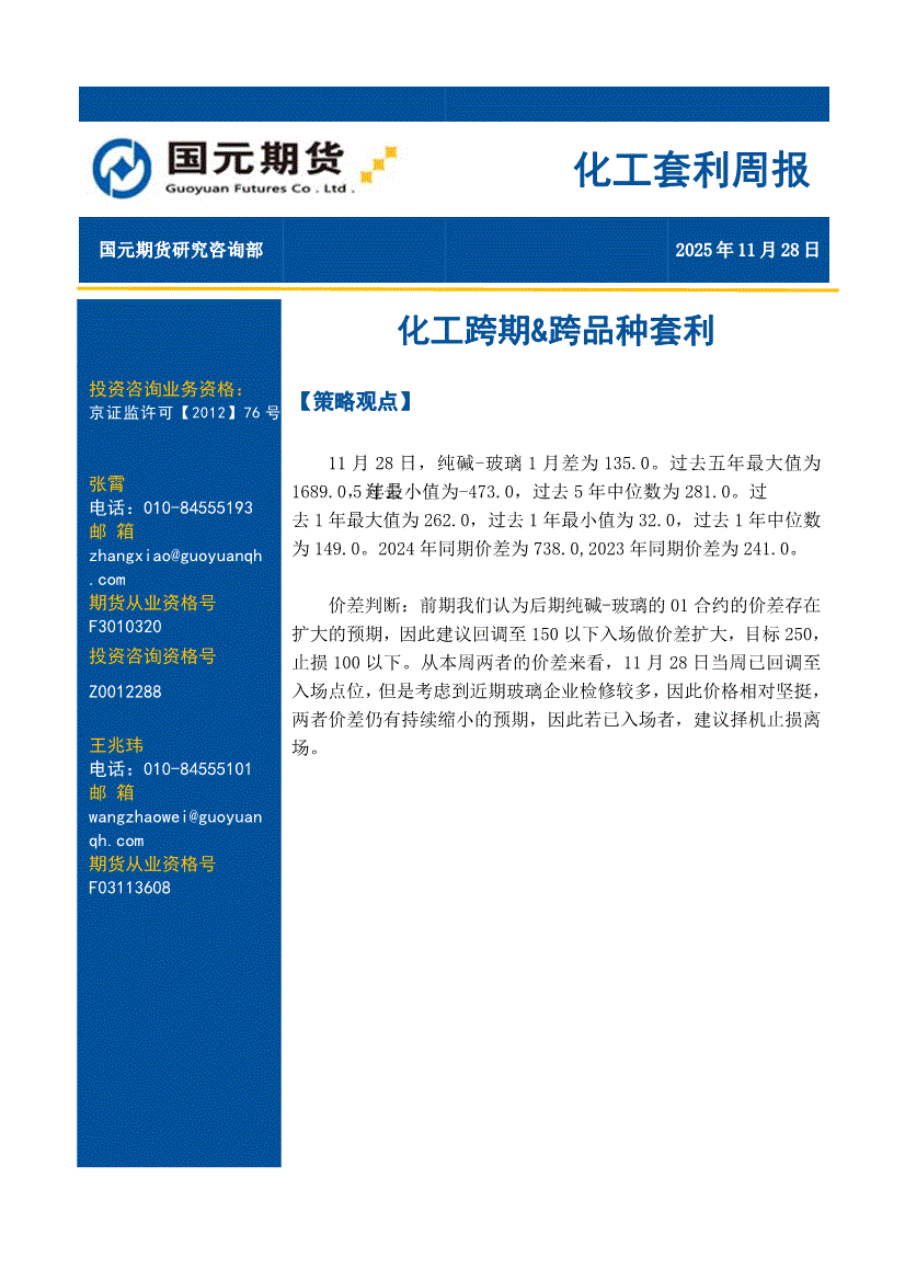 国元期货-化工套利周报:化工跨期&跨品种套利-251128