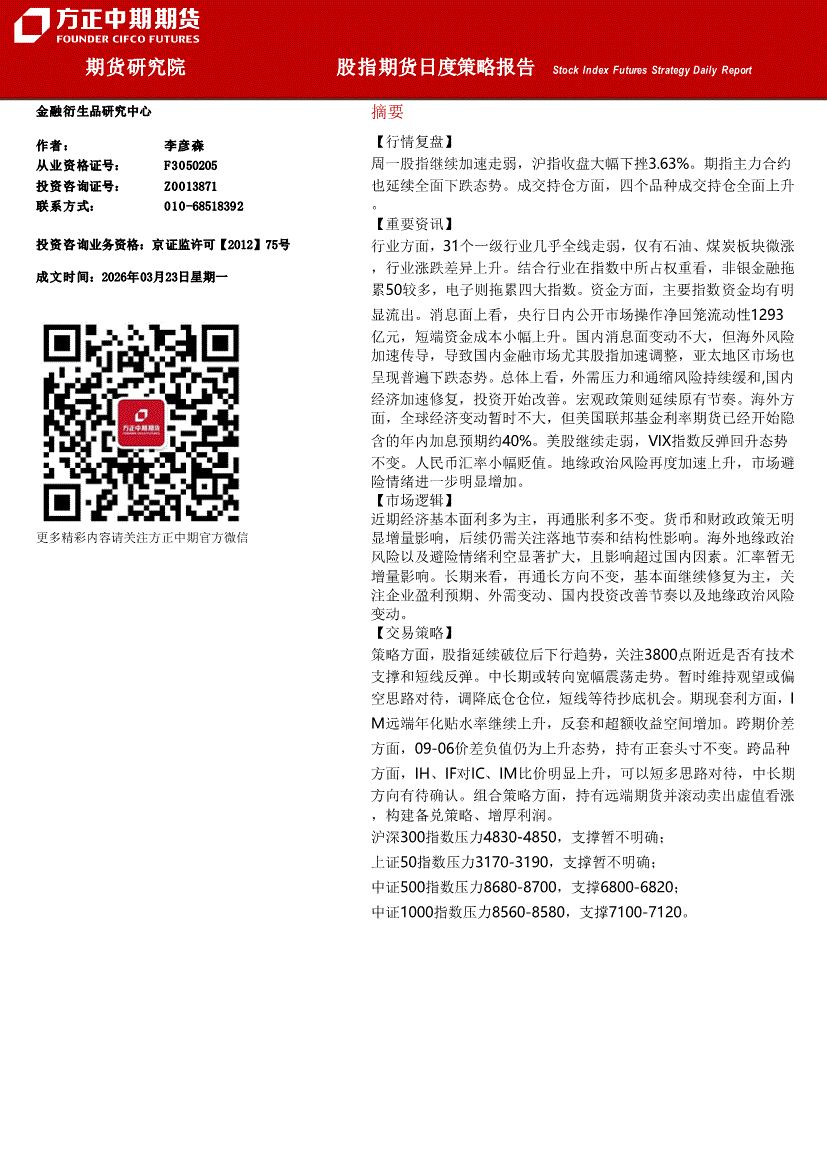 方正中期期货-股指期货日度策略报告-260323