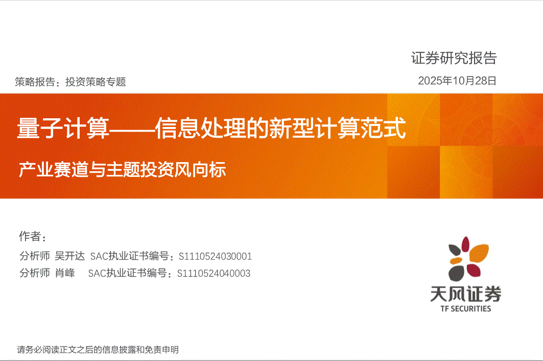 天风证券-产业赛道与主题投资风向标:量子计算——信息处理的新型计算范式-251028