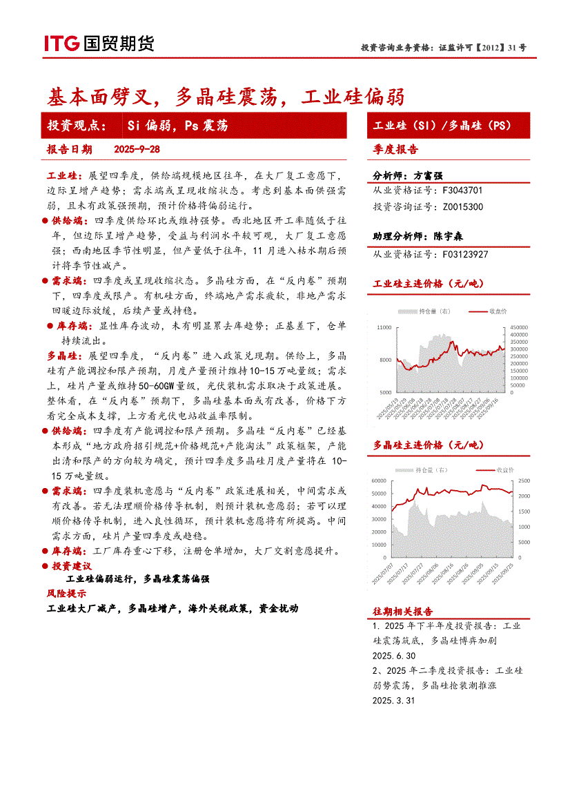 国贸期货-基本面劈叉,多晶硅震荡,工业硅偏弱-250928
