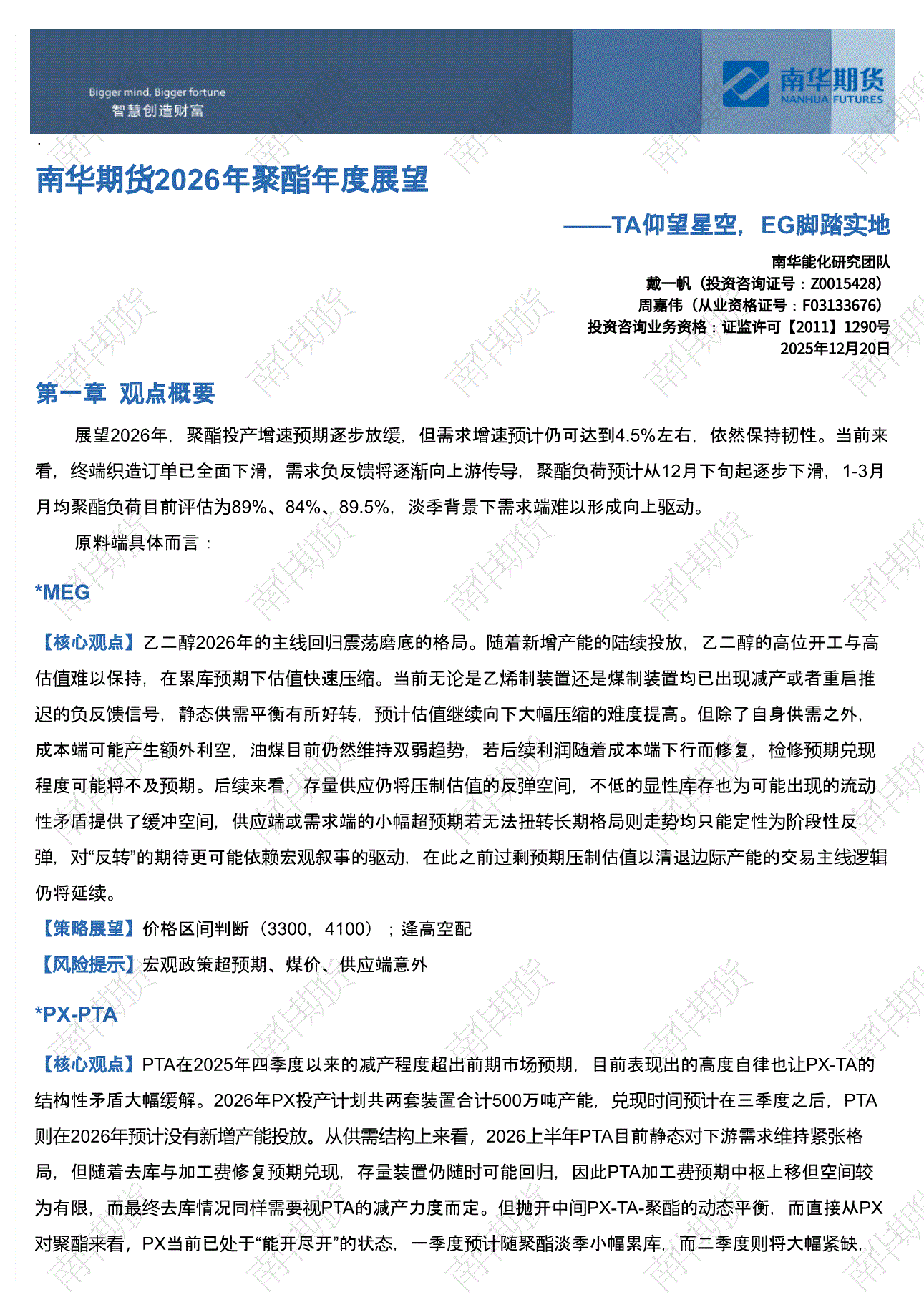 南华期货-2026年聚酯年度展望:TA仰望星空,EG脚踏实地-251220