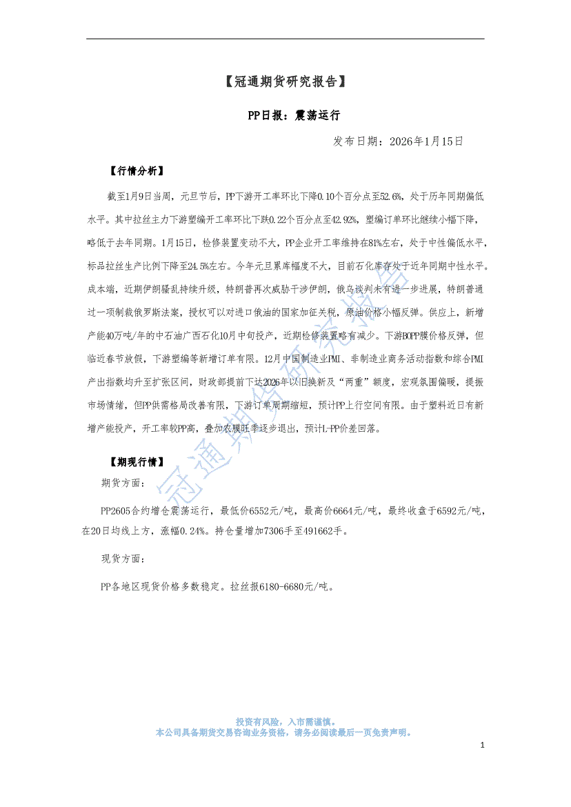冠通期货-PP日报:震荡运行-260115