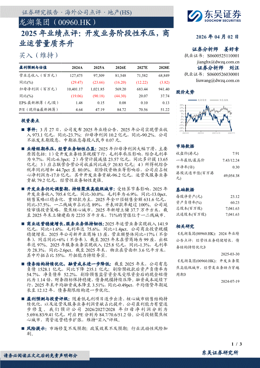 龙湖集团:东吴证券-龙湖集团-0960.HK-2025年业绩点评:开发业务阶段性承压,商业运营量质齐升-260402
