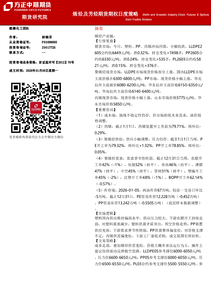 方正中期期货-烯烃及芳烃期货期权日度策略-260105