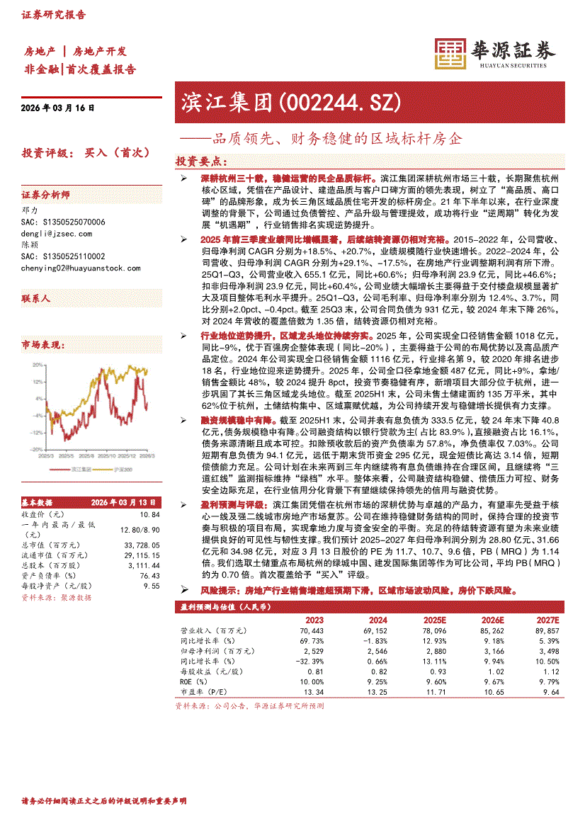 滨江集团:华源证券-滨江集团-002244-品质领先、财务稳健的区域标杆房企-260316