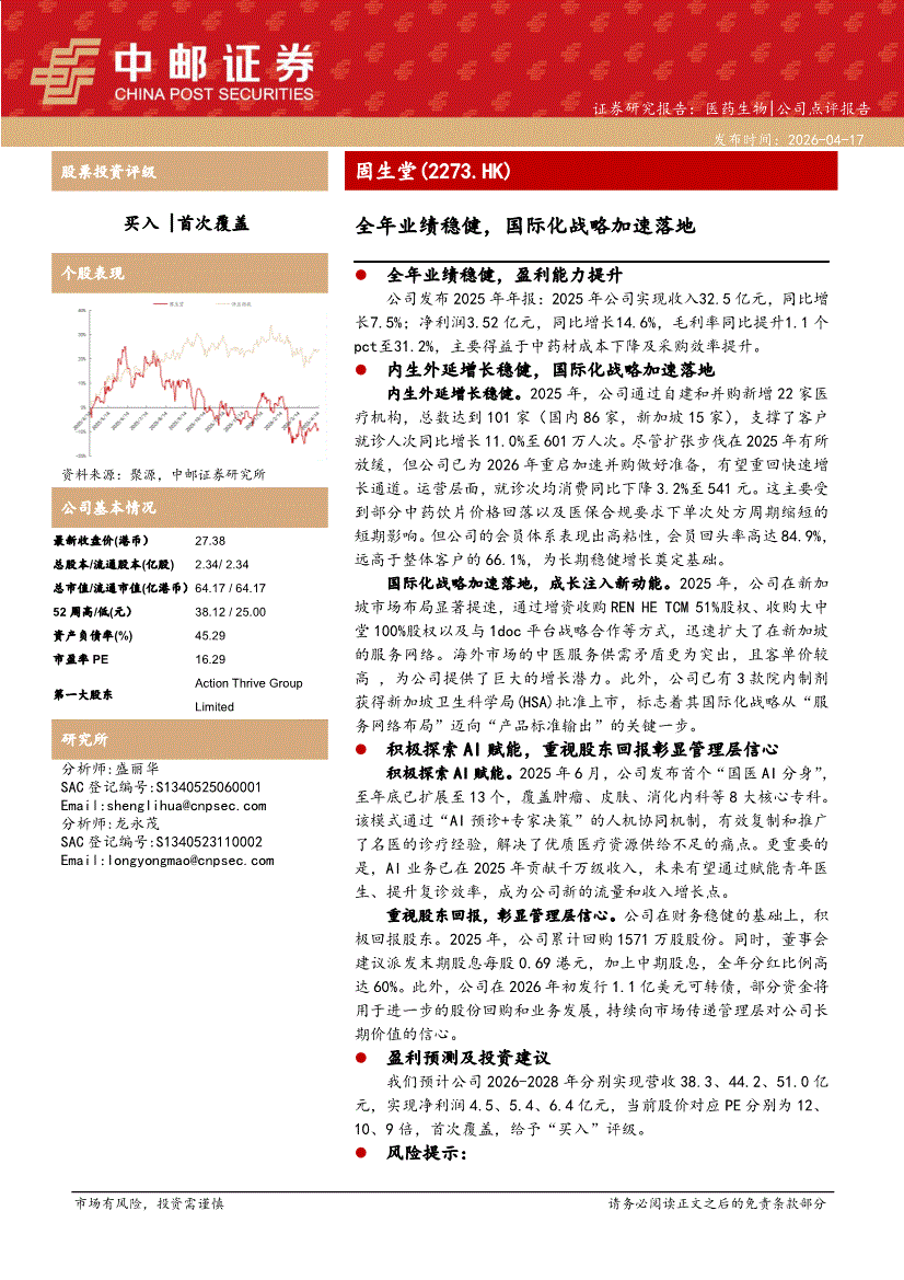 固生堂:中邮证券-固生堂-2273.HK-全年业绩稳健,国际化战略加速落地-260417