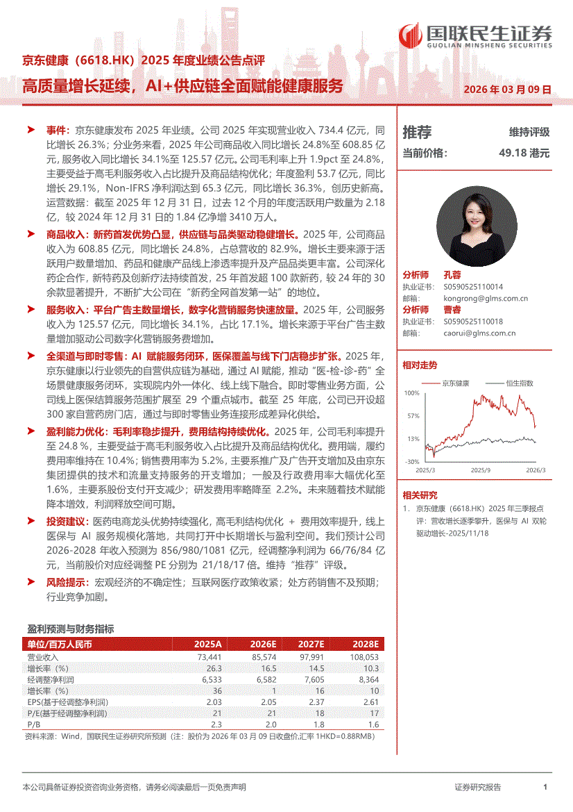 京东健康:国联民生证券-京东健康-6618.HK-2025年度业绩公告点评:高质量增长延续,AI+供应链全面赋能健康服务-260309