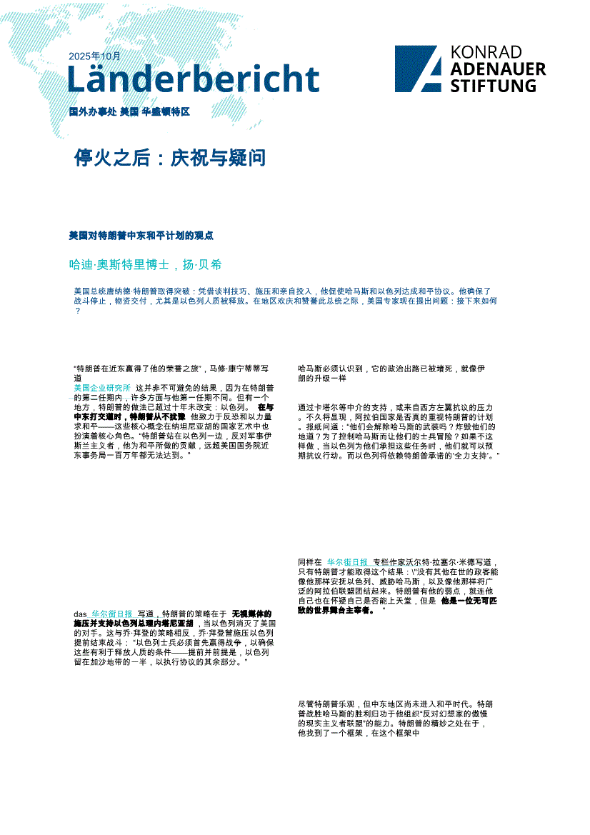 德国阿登纳基金会-美国对特朗普中东和平计划的反应(英译中)-251018