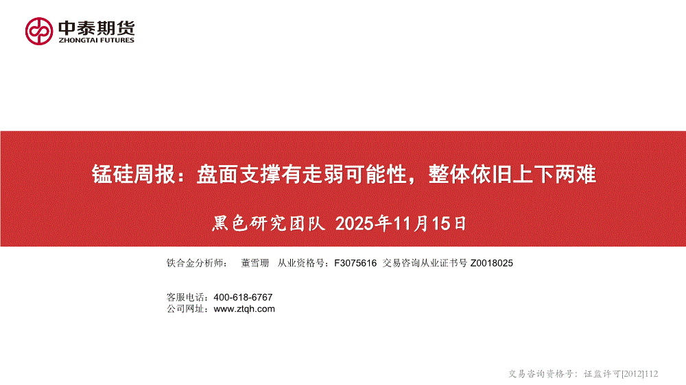 中泰期货-锰硅周报:盘面支撑有走弱可能性,整体依旧上下两难-251115