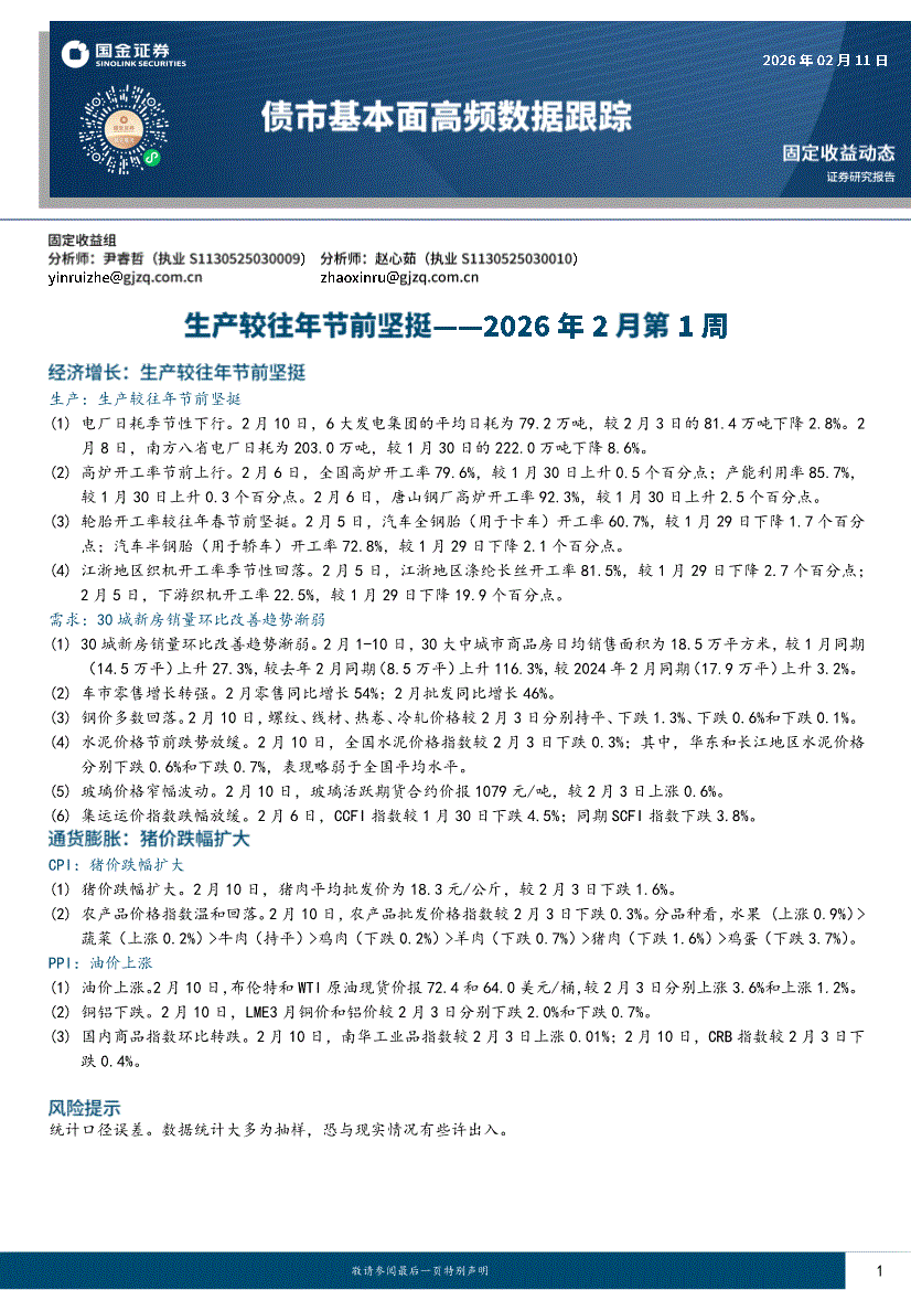 国金证券-债市基本面高频数据跟踪:生产较往年节前坚挺——2026年2月第1周-260211