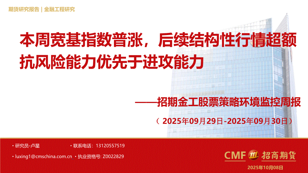 招商期货-金工股票策略环境监控周报:本周宽基指数普涨,后续结构性行情超额抗风险能力优先于进攻能力-251008