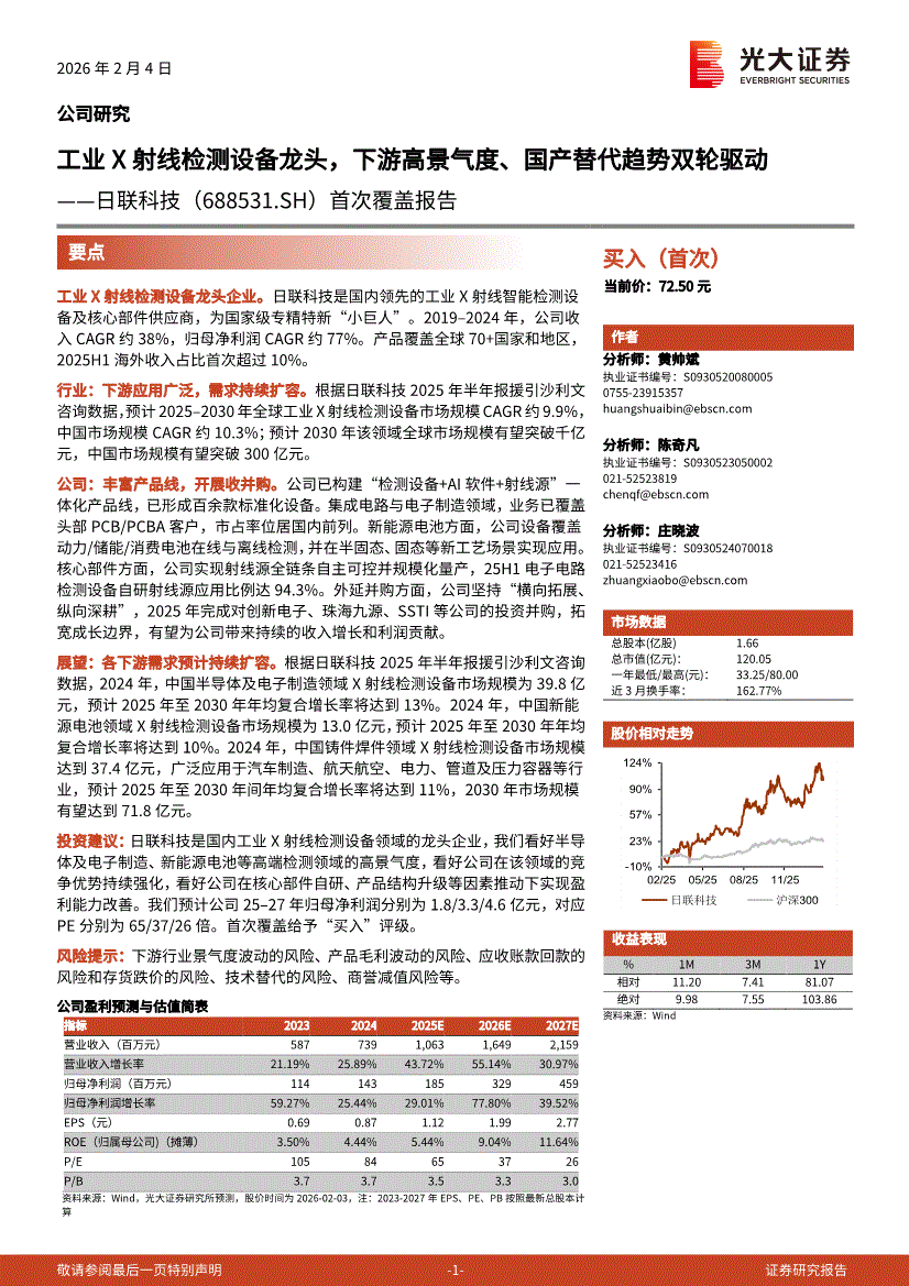 日联科技:光大证券-日联科技-688531-首次覆盖报告:工业X射线检测设备龙头,下游高景气度、国产替代趋势双轮驱动-260204