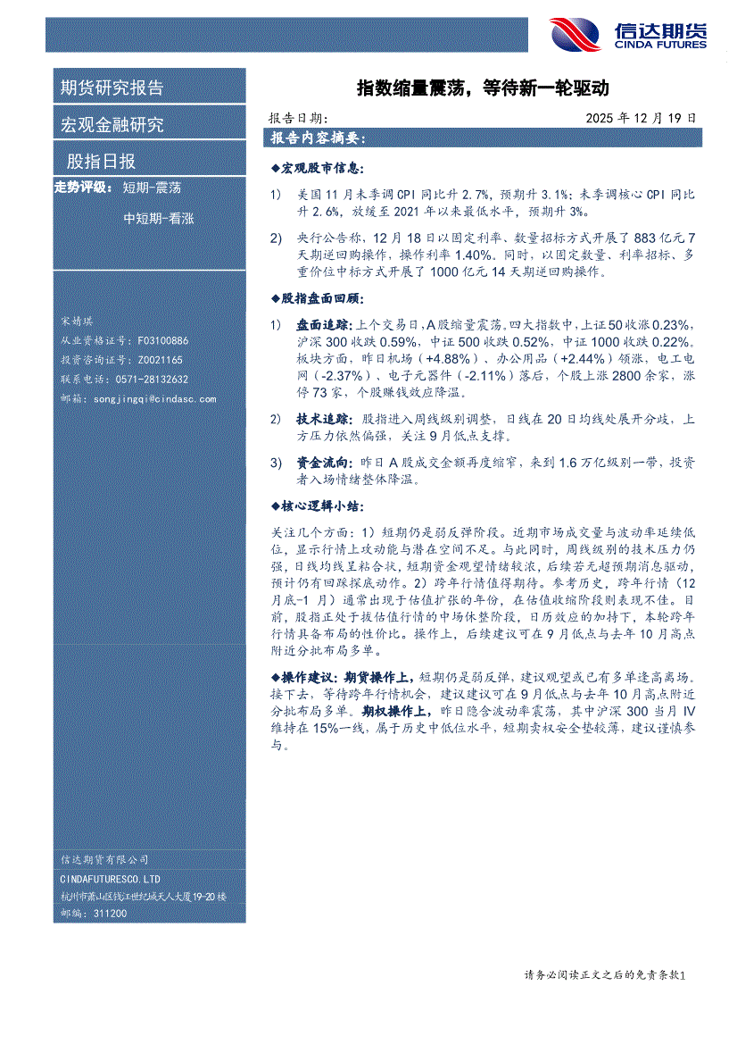 信达期货-股指日报:指数缩量震荡,等待新一轮驱动-251219