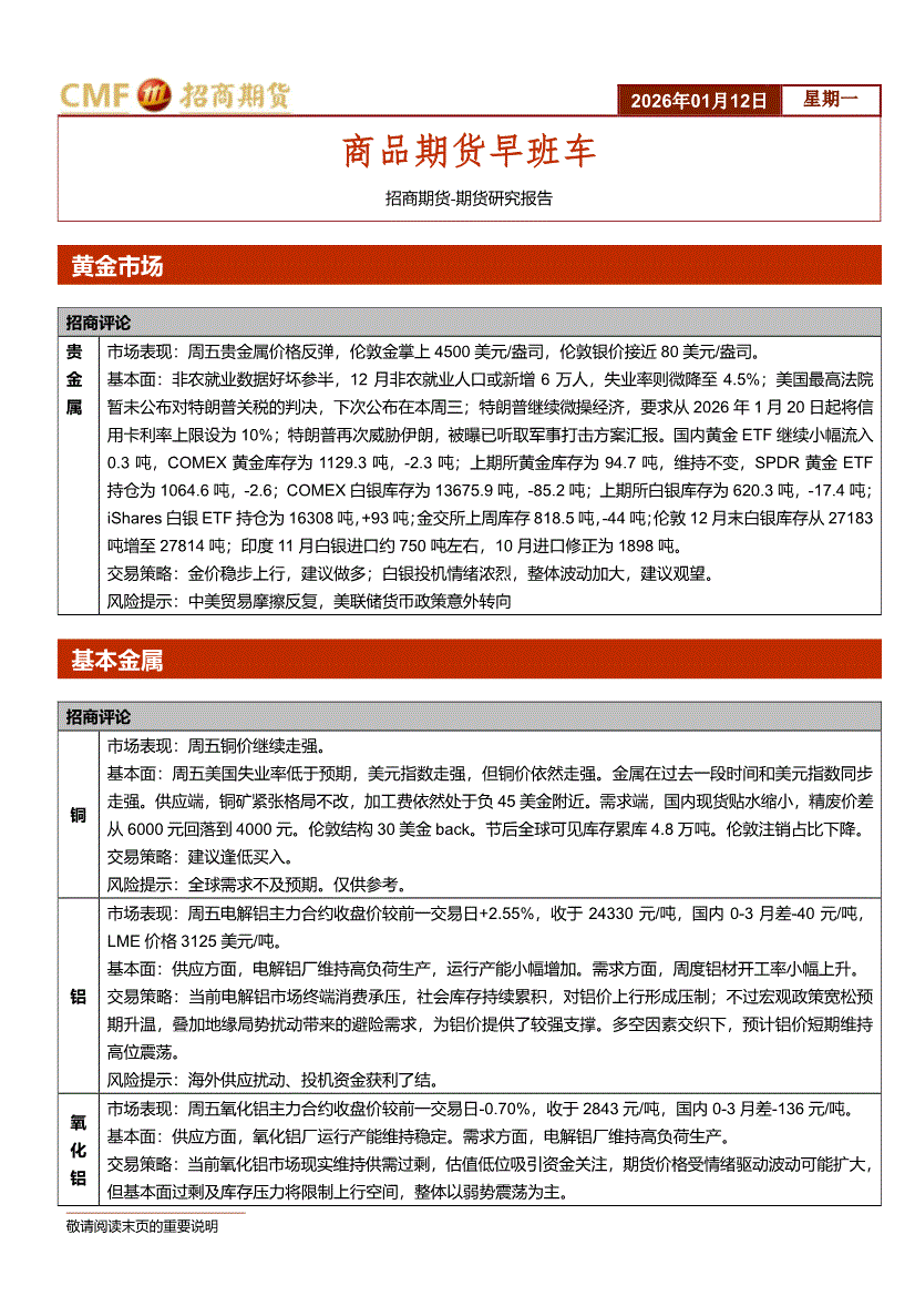 招商期货-商品期货早班车-260112