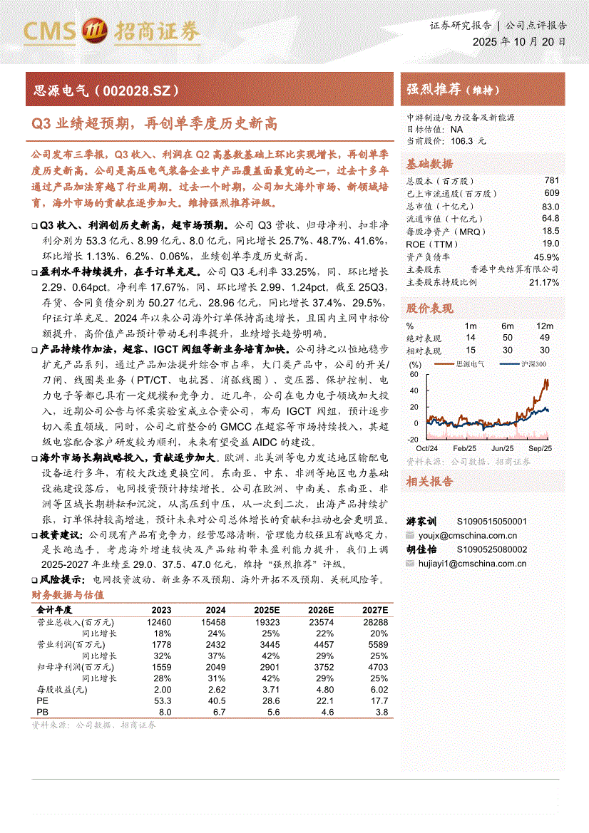思源电气:招商证券-思源电气-002028-Q3业绩超预期,再创单季度历史新高-251020