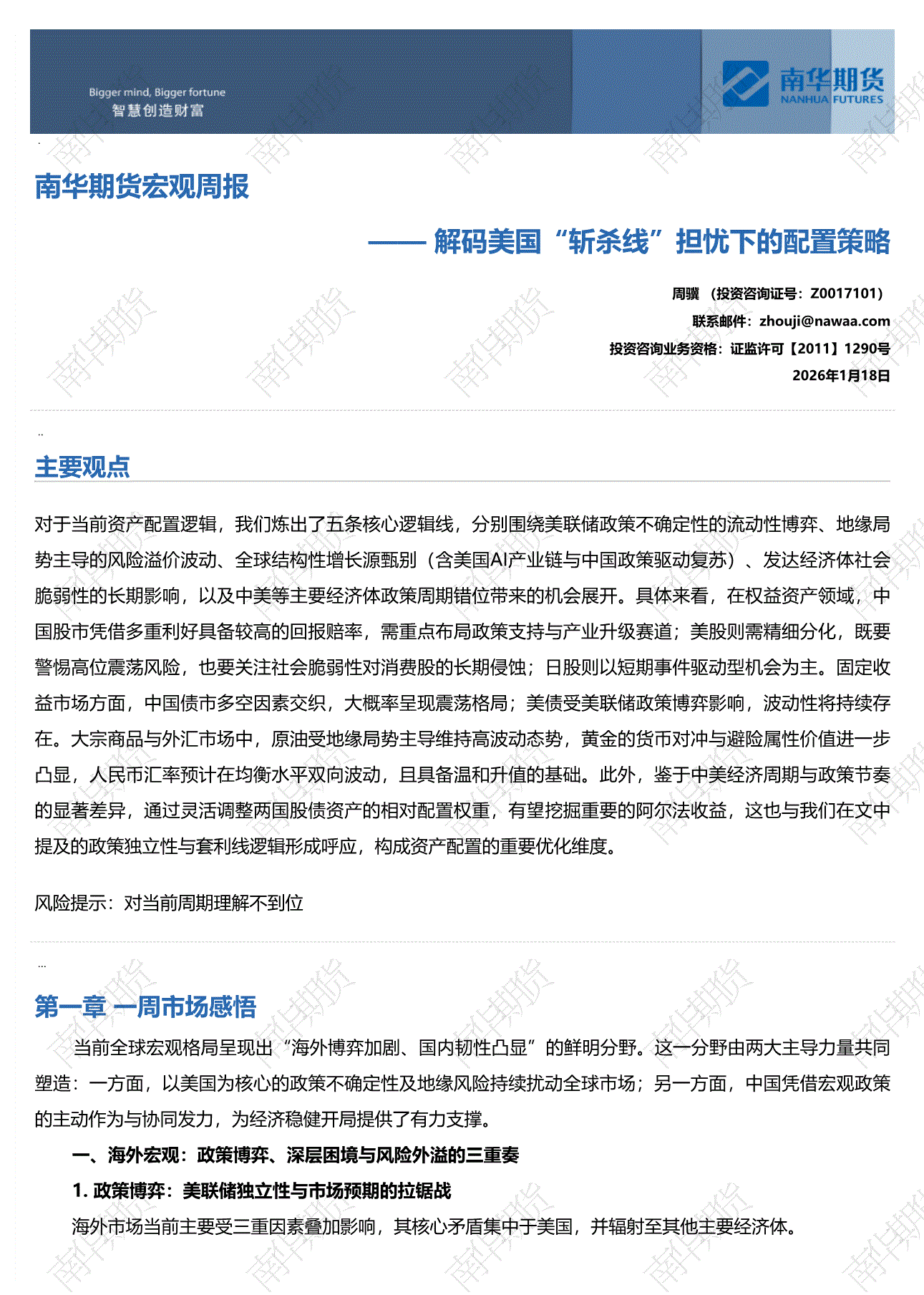 南华期货-宏观周报:解码美国“斩杀线”担忧下的配置策略-260118