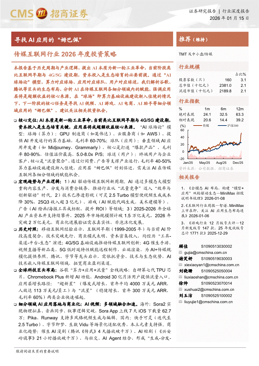 传媒互联网行业:招商证券-传媒互联网行业2026年度投资策略:寻找AI应用的“姆巴佩”-260115