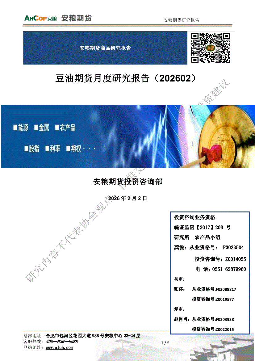 安粮期货-豆油期货月度研究报告(202602)-260202