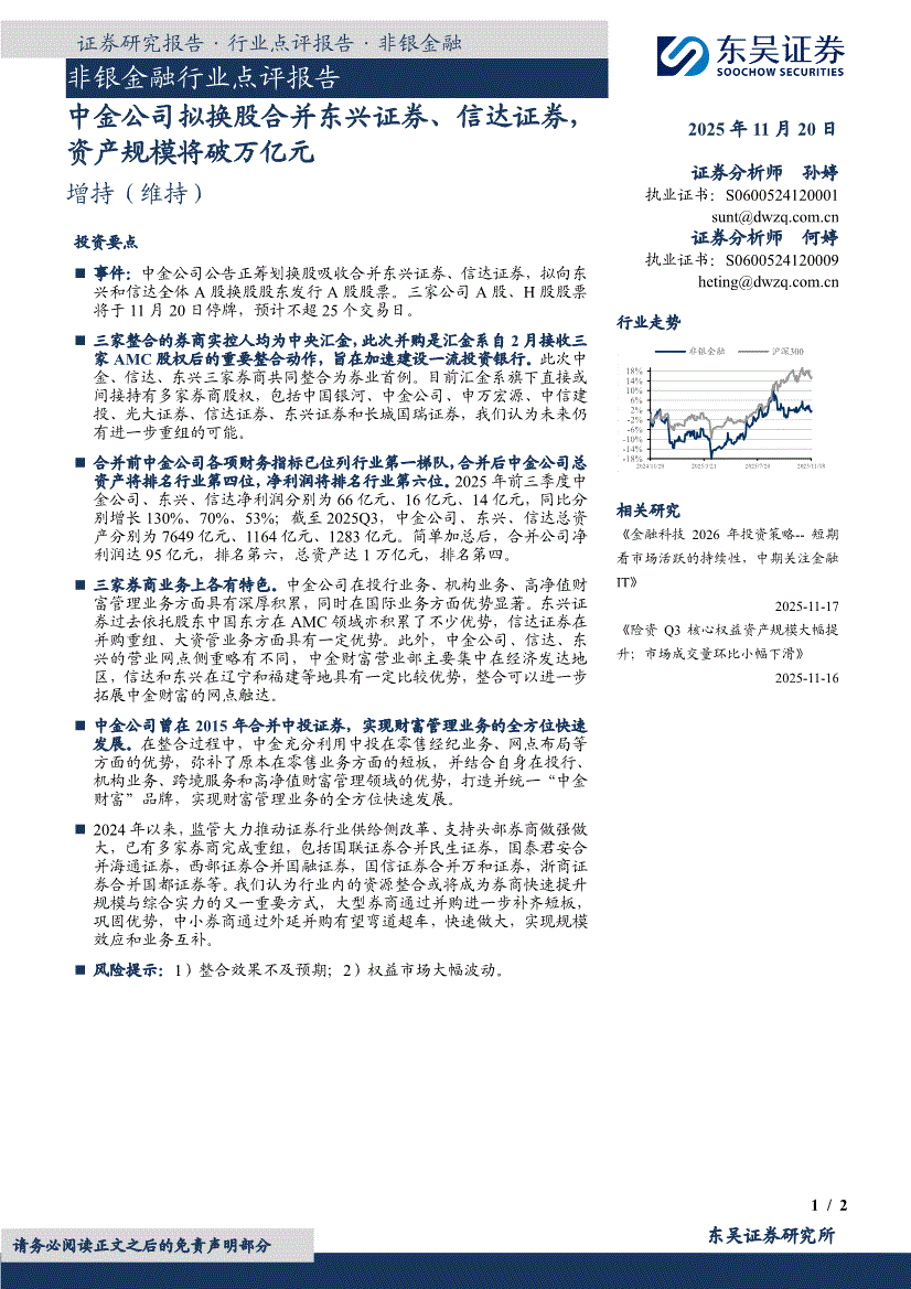 非银金融行业:东吴证券-非银金融行业点评报告:中金公司拟换股合并东兴证券、信达证券,资产规模将破万亿元-251120
