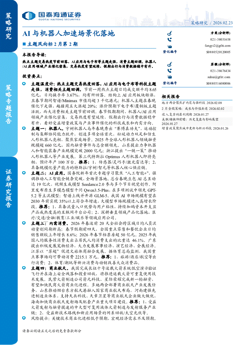 国泰海通证券-主题风向标2月第2期:AI与机器人加速场景化落地-260223