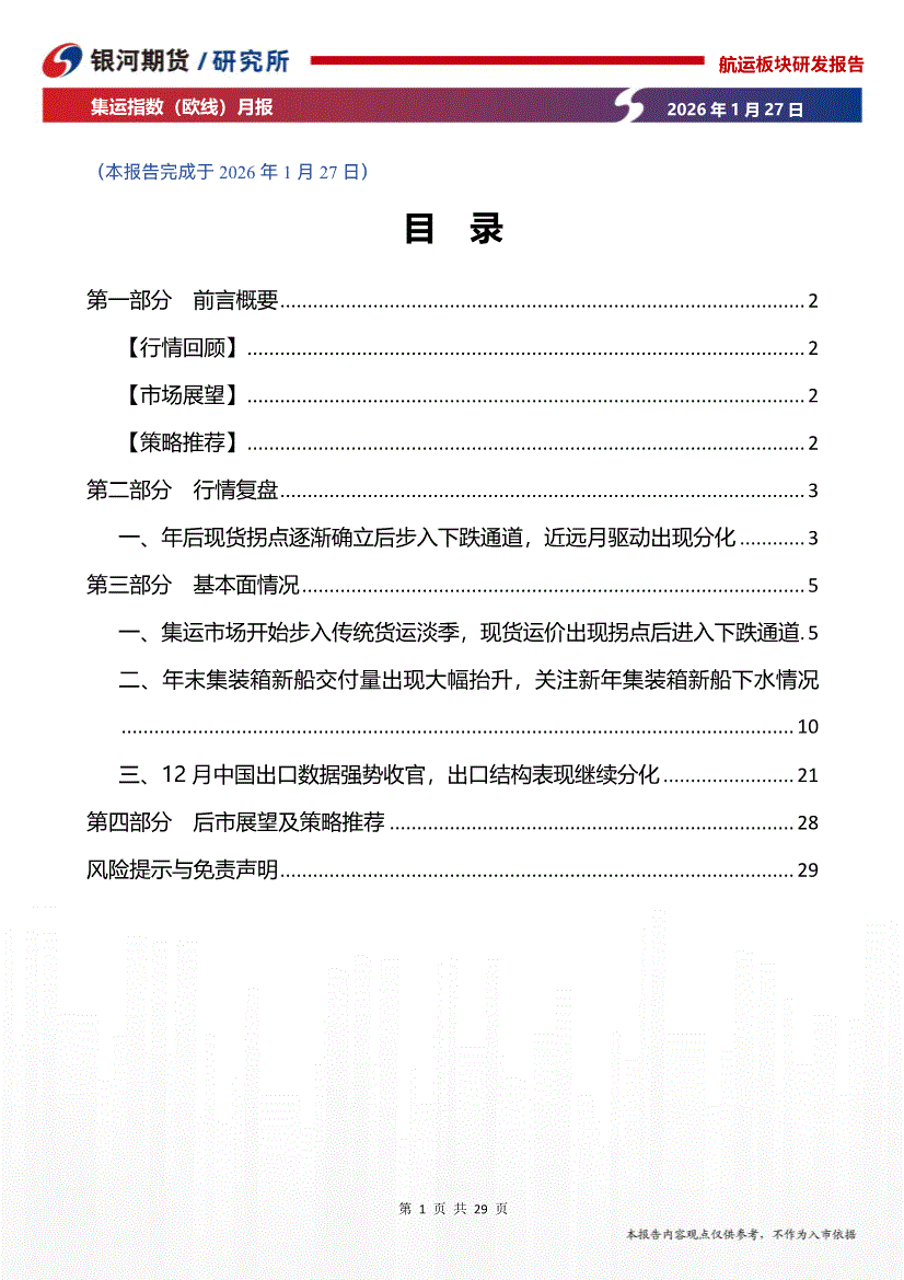 银河期货-集运指数(欧线)月报:1月现货拐点已现,关注地缘动态进展-260127