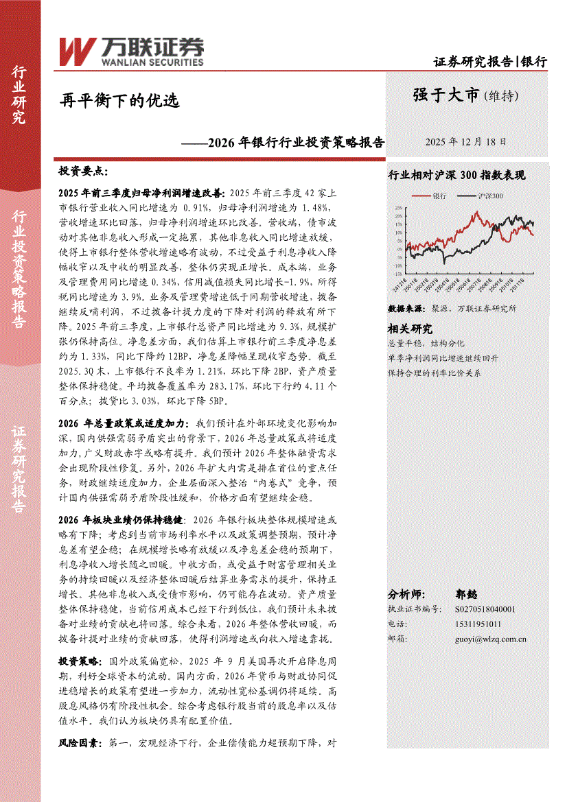 银行业:万联证券-2026年银行行业投资策略报告:再平衡下的优选-251218