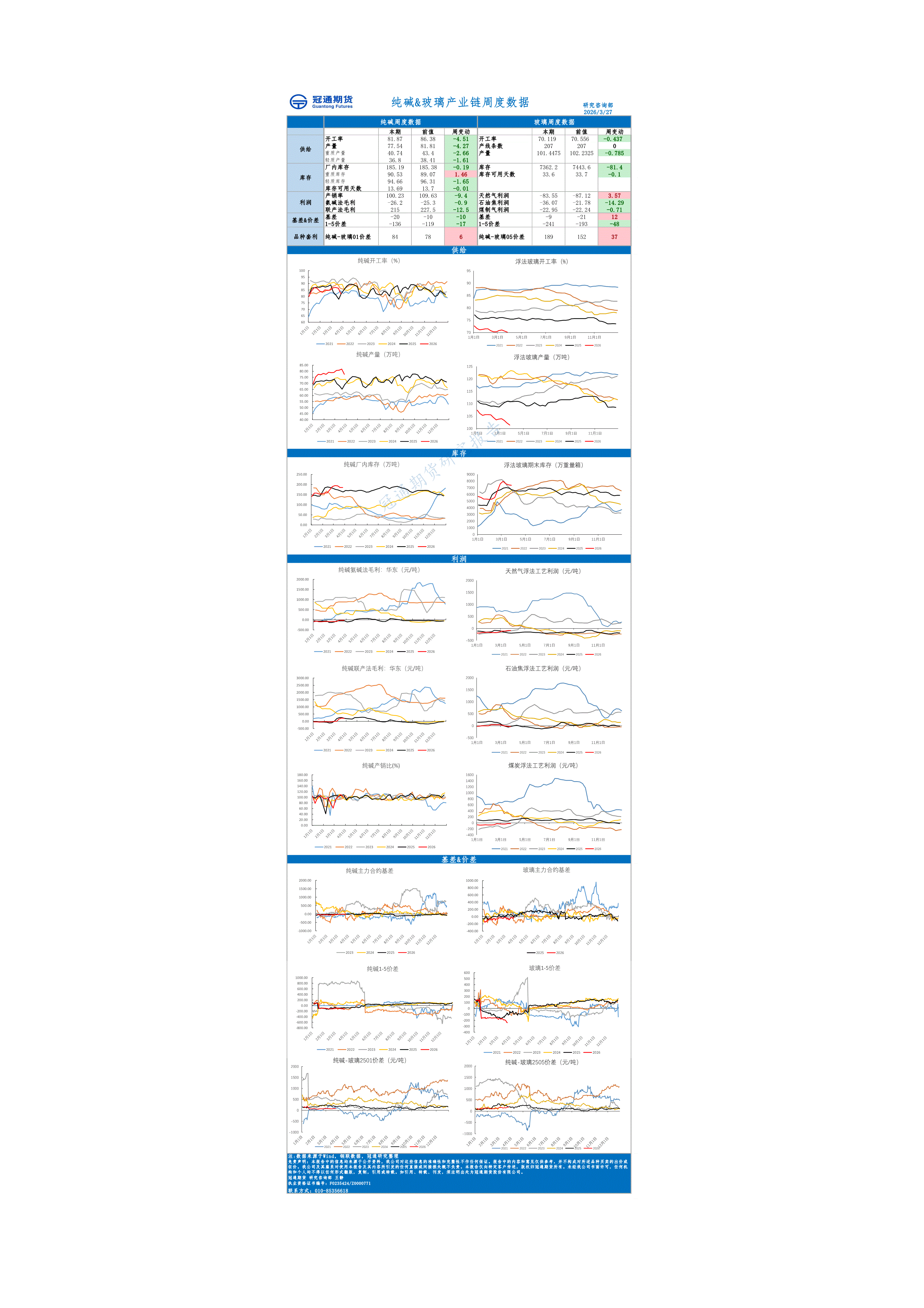 冠通期货-玻璃&纯碱产业链周度数据-260327