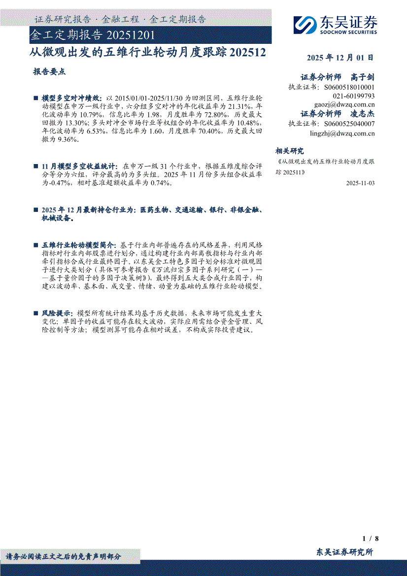 东吴证券-金工定期报告:从微观出发的五维行业轮动月度跟踪-251201