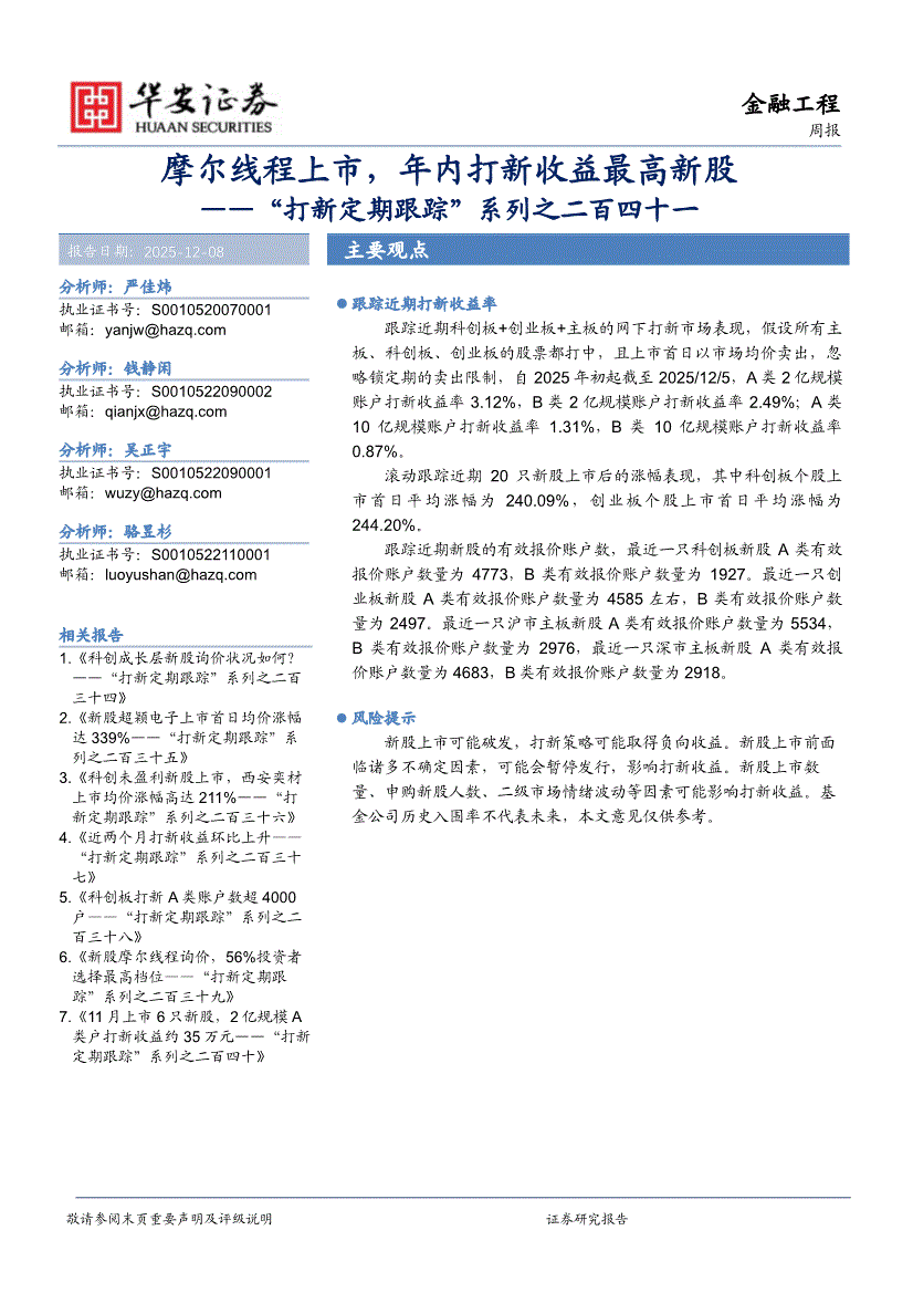 华安证券-“打新定期跟踪”系列之二百四十一:摩尔线程上市,年内打新收益最高新股-251208