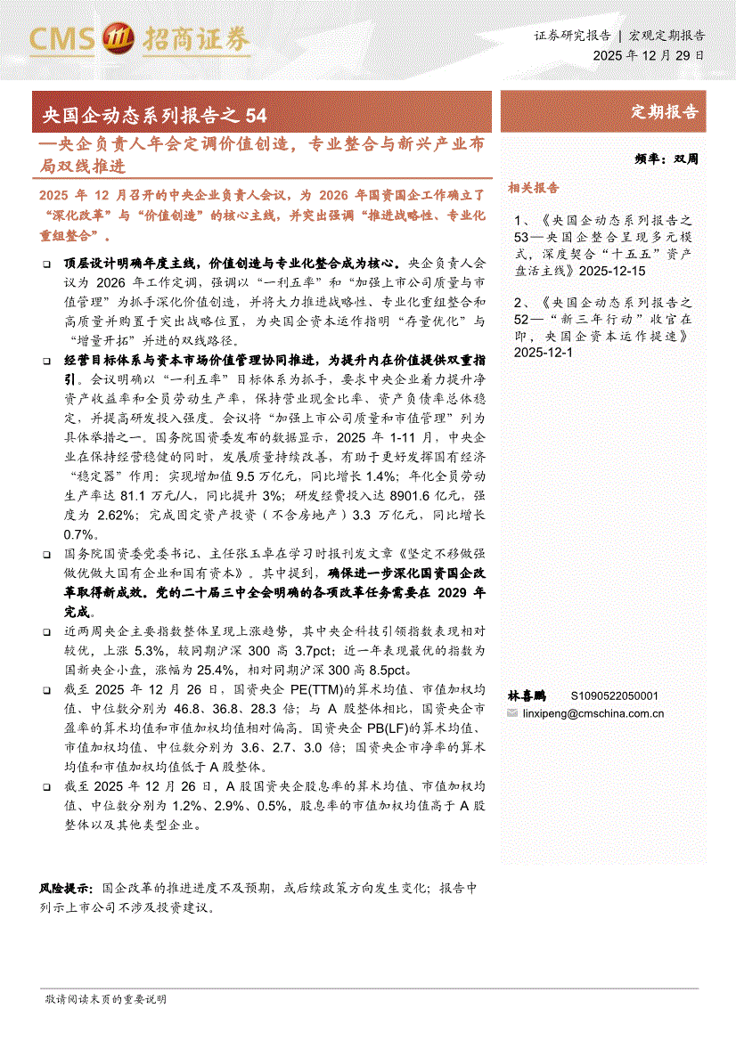 招商证券-央国企动态系列报告之54:央企负责人年会定调价值创造,专业整合与新兴产业布局双线推进-251229